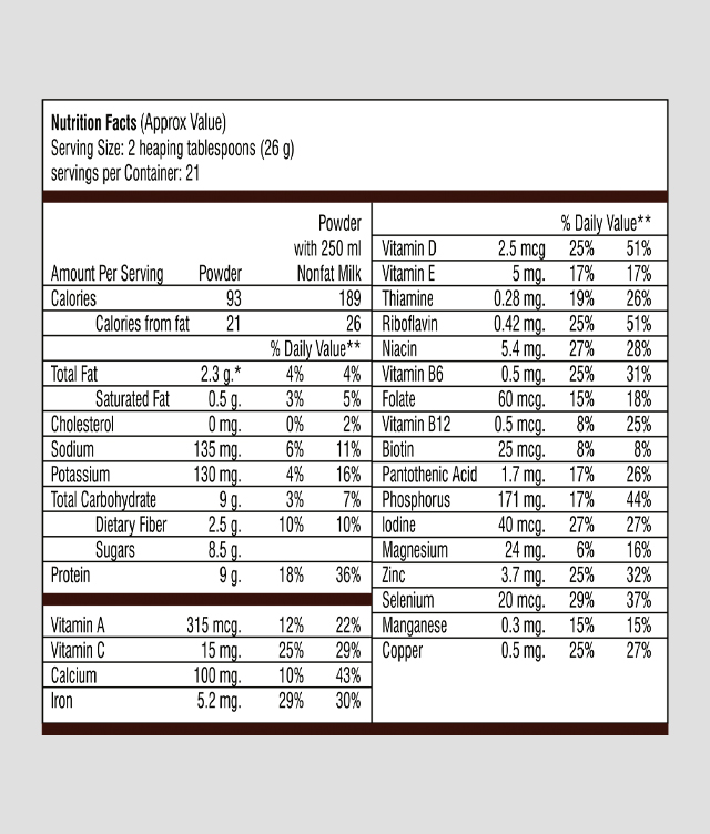 Soy Protein Isolate, Coco Powder, Chocolate Flacouring Substances, Lecithine Powder, Soy Powder, Oat Fiber, Calcium Citrate, Fructose Powder, Whey Protein Concentrate, Potassium Chloride, Vitamins, Minerals, Zingiber Officinale Rhizome Powder, Papain Powder