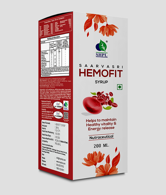 Hemofit syrup tends to stimulate blood cell formation, increasing the hemoglobin in the blood to prevent Anemia. Hemoglobin is an iron-containing protein in your red blood cells that carries oxygen to your body's organs and tissues and transports carbon dioxide from your organs and tissues back to your lungs. Anemia is a decrease in the total amount of red blood cells (RBCs) or hemoglobin in the blood or a lowered ability of the blood to carry oxygen.