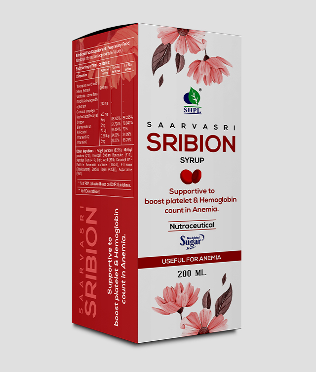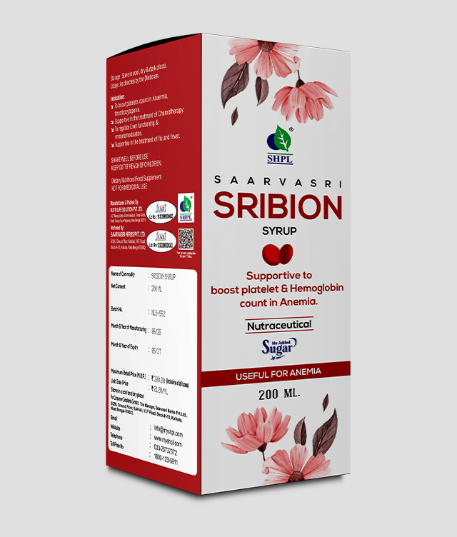Anemia is a common problem especially among females that often becomes the cause of weakness and exhaustion in them. Saarvasri Herbs Sribion Syrup is an amazing product for Iron Deficiency & Anemia which is a combination of naturally processed iron and essential herbs like Papaya Leaf etc. that are helpful in treating iron deficiency and Anemia as recommended by Ayurveda.