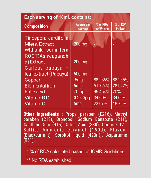Papaya Leaf Extract, Giloy, Ashwagandha.