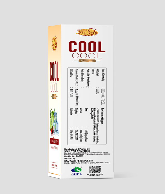 Care for your greasy scalp, dull hair and tired, stressed out scalp with Saarvasri Cool Cool Hair Oil. The oil has a cooling infusion of peppermint oil and menthol crystals that soothe irritated scalp and restore over all freshness. Gives you a soothing, and cooling sensation. The oil with blend of natural cold-pressed oils delivers the nutrients directly to your roots and protect the weak strands with its conditioning effect