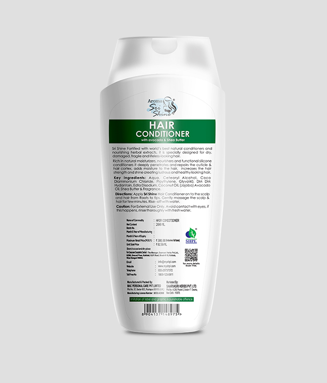 Sri shine natural hair conditioners and nourishing herbal extract is specially designed for dry, damaged, fragile and lifeless looking hair. Rich in natural moisturizers, nourishers and repairs the cuticle & hair cortex, adds moisture to the hair, increases the hair strength and shine creating lustrous and healthy looking hair.