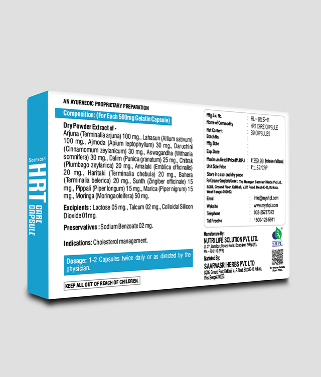 Strengthen your heart with Saarvasri HRT Care Capsules. This herbal formulation supports cardiovascular health, improves circulation, and promotes overall heart function. Keep your heart healthy with HRT Care Capsules.