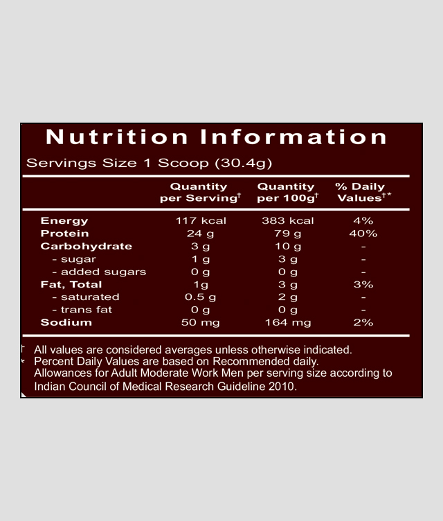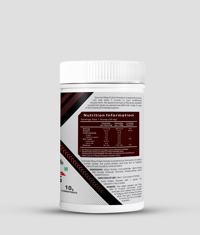 Saarvasri Herbs Whey Protein Powder is powered by the purity of whey protein isolate, the purest protein and has set a higher benchmark of purity for other proteins. It is the most premium protein, especially for those fitness enthusiasts who would settle for nothing, but the best protein for themselves. A 30g serving size of whey gold contains 25g of whey protein isolate.