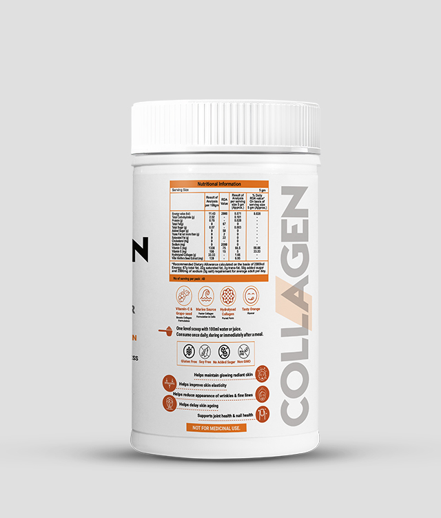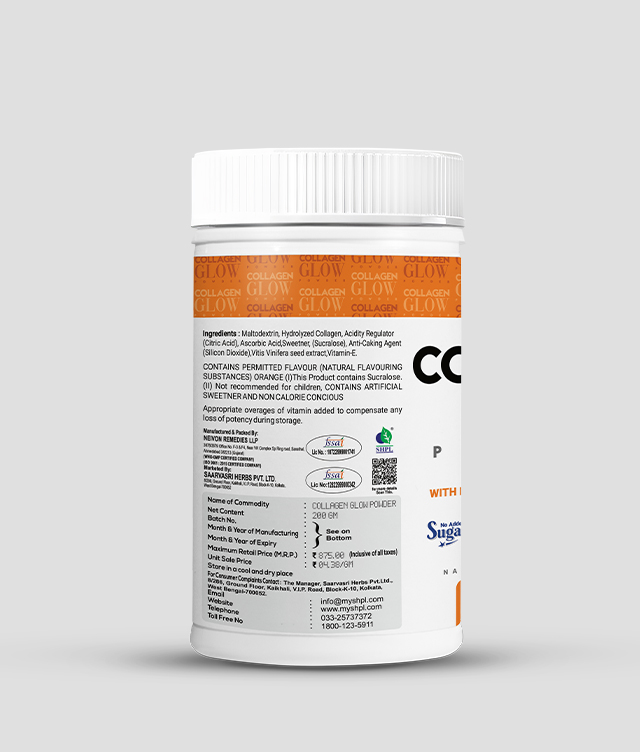 Introducing SHPL Collagen Glow Powder Orange, your secret weapon for achieving youthful, radiant skin and maintaining strong, resilient joints. Crafted from Hydrolyzed Marine Collagen and Grape Seed Extracts, this powder is meticulously formulated to replenish and revitalize from within. With its high bioavailability, Collagen Glow Powder effortlessly absorbs into the body, stimulating collagen production to smooth fine lines and wrinkles, resulting in a luminous, youthful complexion. But that's not all – our unique blend also works wonders for joint health, promoting flexibility and supporting overall mobility, as well as improves gut health and muscle strength. Say hello to glowing skin and stronger joints with our Collagen Glow Powder, and embrace a life of vitality and radiance.