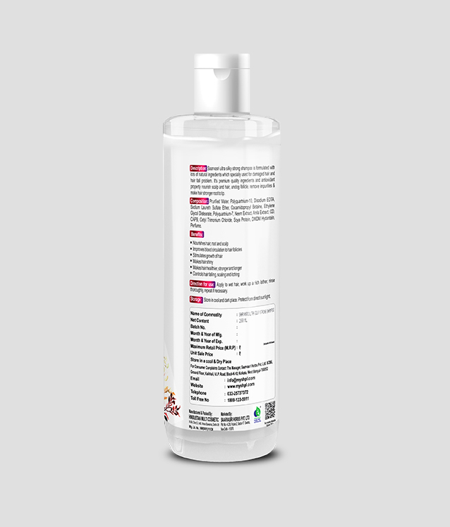 Saarvasri Ultra Silky Strong shampoo is formulated with lots of natural ingredients which specially used for damaged hair and hair fall problem. It's premium quality's ingredients and anti oxidant property nourishes scalp and hair, unclogs follicle, remove impurities & Make hair stronger root to tips.