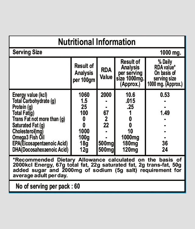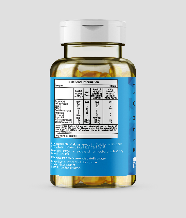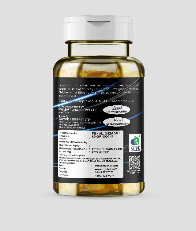 Enhance your health with Saarvasri Fish Oil Softgels. Packed with omega-3 fatty acids, these softgels support heart health, boost brain function, and promote joint flexibility. Experience the benefits of premium fish oil with Saarvasri Fish Oil Softgels.
