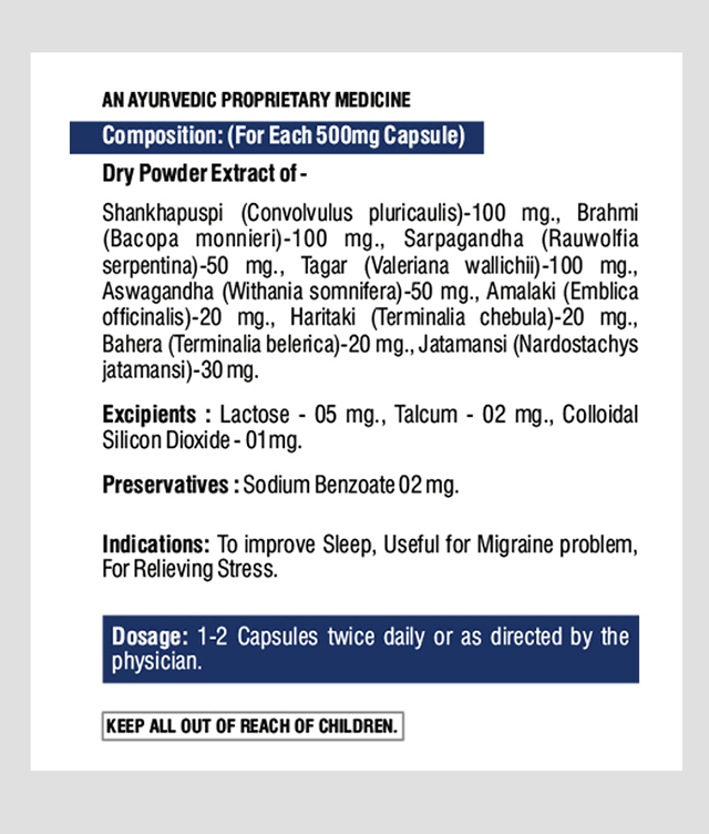 Shankhpuspi, Brahmi, Sarpagandha, Tagar, Triphala, Ashwagandha, Jatamansi.