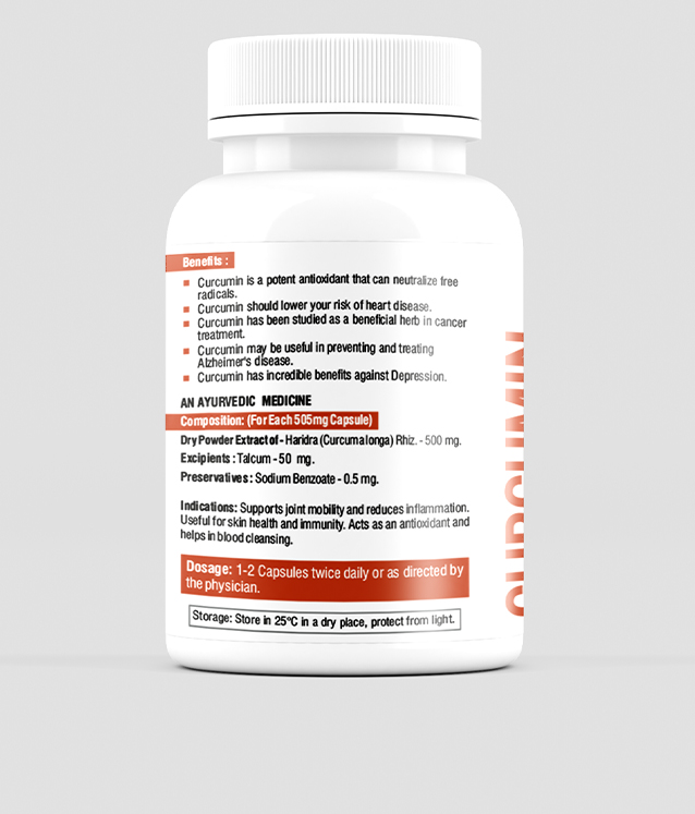 Saarvasri Herbs Curcumin Capsule is a wonderful product made of curcumin. Curcumin is a yellow-orange dye obtained from tumeric, the powdered root of Curcuma Longa or Turmeric. Curcumin is a natural component of the rhizome of turmeric (Curcuma longa) and its biological effects range from antioxidant, anti-inflammatory to inhibition of angiogenesis and is also shown to possess specific anti-tumoral activity.