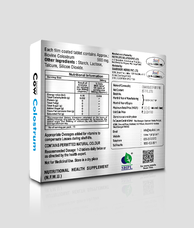 Saarvasri Herbs Cow Cholostrum is made of Cholostrum which is a milky fluid that comes from the breasts of humans, cows, and other mammals the first few days after giving birth, before true milk appears. It contains proteins, carbohydrates, fats, vitamins, minerals, and proteins (antibodies) that fight disease-causing agents such as bacteria and viruses.