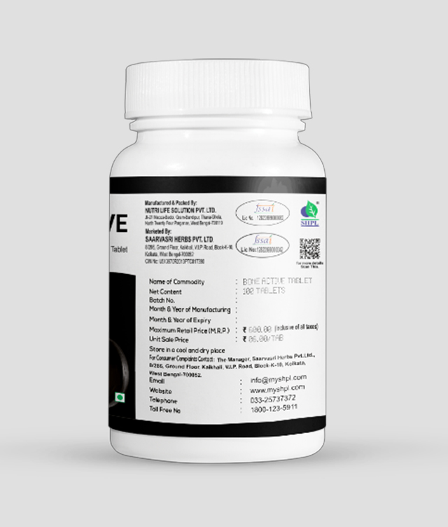 Saarvasri Herbs Bone Active Tablet is used to prevent or treat low blood calcium levels in people who do not get enough calcium from their diets. Calcium plays a very important role in the body. It is necessary for normal functioning of nerves, cells, muscle, and bone. If there is not enough calcium in the blood, then the body will take calcium from bones, thereby weakening bones. Vitamin D3 helps your body absorb calcium. Having the right amounts of vitamin D3, calcium is important for building and keeping strong bones.