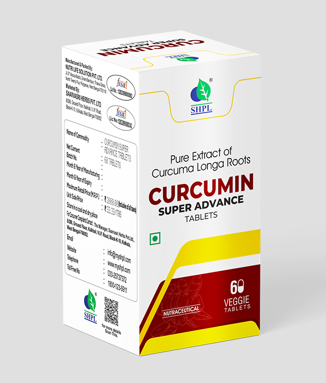 Saarvasri Herbs Curcumin Super Advance Tablet is a wonderful product made of 95% of curcumin. Curcumin is a yellow-orange dye obtained from tumeric, the powdered root of Curcuma Longa or Turmeric. Curcumin is a natural component of the rhizome of turmeric (Curcuma longa) and one of the most powerful chemopreventive agents. Its biological effects range from antioxidant, anti-inflammatory to inhibition of angiogenesis and is also shown to possess specific antitumoral activity.