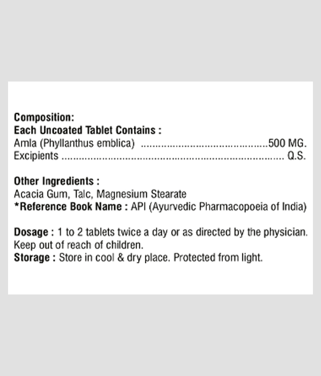 Boost your immunity with Amla Tablets. Packed with Vitamin C and antioxidants, these tablets support overall health and vitality. Amla helps improve digestion, promote healthy skin, and enhance hair growth, making it a powerful addition to your daily wellness routine.