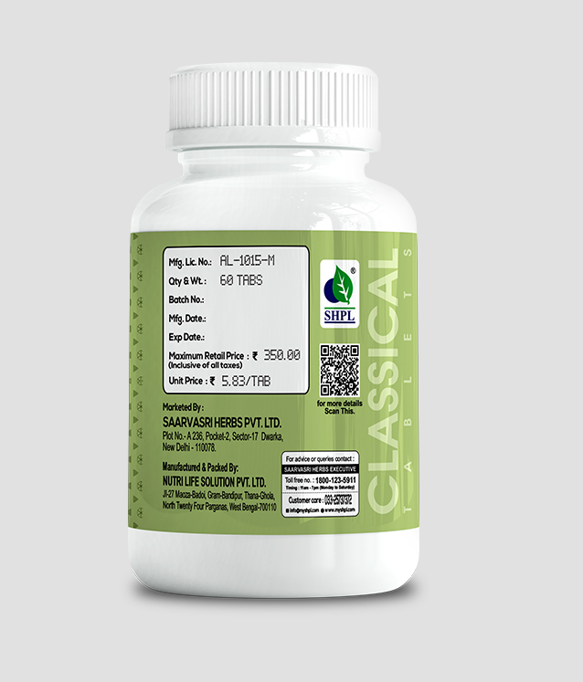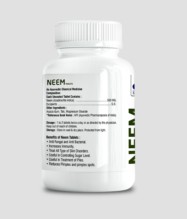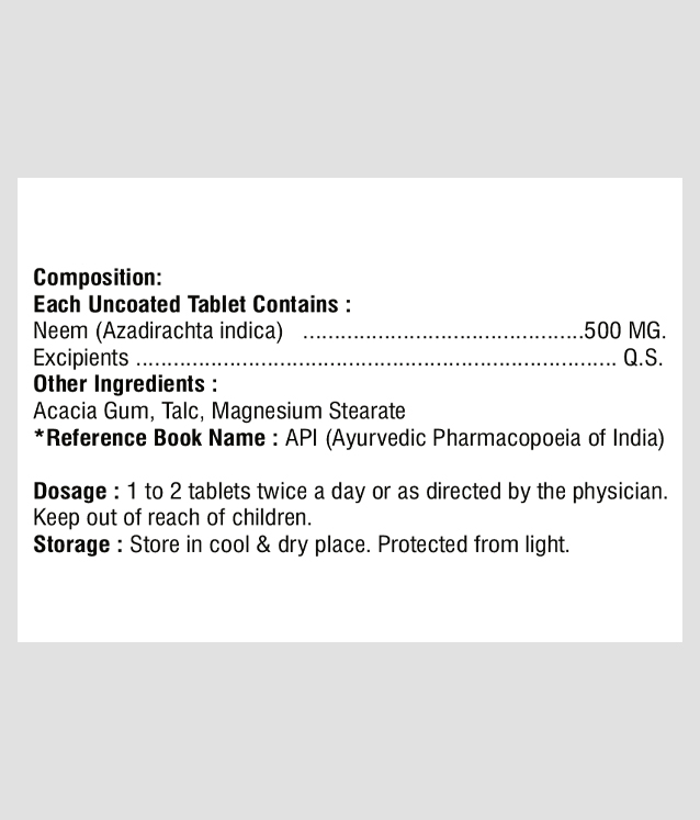 Azadirachta indica, commonly known as neem, has attracted worldwide prominence in recent years, owing to its wide range of medicinal properties. Neem has been extensively used in Ayurveda, Unani and Homoeopathic medicine and has become a cynosure of modern medicine. Neem elaborates a vast array of biologically active compounds that are chemically diverse and structurally complex. More than 140 compounds have been isolated from different parts of neem. These biochemical components include azadirachtin, nimbolinin, nimbin, nimbidin, nimbidol, nimbanene, nimbandiol, nimbolide, sodium nimbinate, gedunin, salannin, quercetin, 6-desacetylnimbinene, ascorbic acid, n-hexacosanol and amino acid, 7-desacetyl-7-benzoylazadiradione, 7-desacetyl-7-benzoylgedunin, 17-hydroxyazadiradione, ß-sitosterol, and polyphenolic flavonoids. All parts of the neem tree- leaves, flowers, seeds, fruits, roots and bark have been used traditionally for the treatment of inflammation, infections, fever, skin diseases and dental disorders. Saarvasri Neem Tablets have been demonstrated to exhibit immunomodulatory, anti-inflammatory, antihyperglycaemic, antiulcer, antimalarial, antifungal, antibacterial, antiviral, antioxidant, antimutagenic and anticarcinogenic properties.