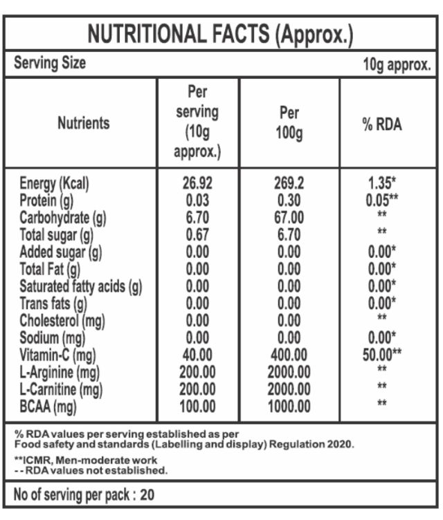 Beet Root Powder, BCAA, L-Arginine, L-Carnitine, Resveratrol, Vitamin C, Stevia Sweetener