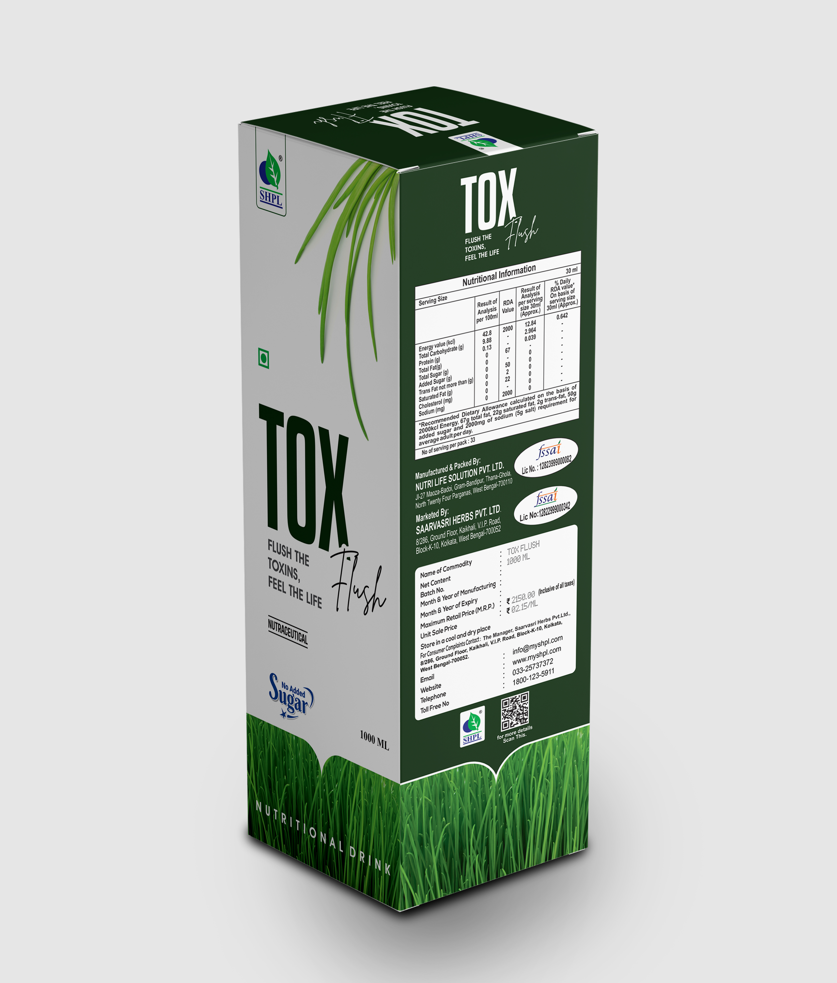 Tox Flush Juice by SHPL is a natural detox drink that combines the goodness of Ayurvedic herbs and fresh ingredients to help cleanse your body and boost overall wellness. This refreshing juice supports digestion, immunity, and energy levels, making you feel lighter and revitalized.