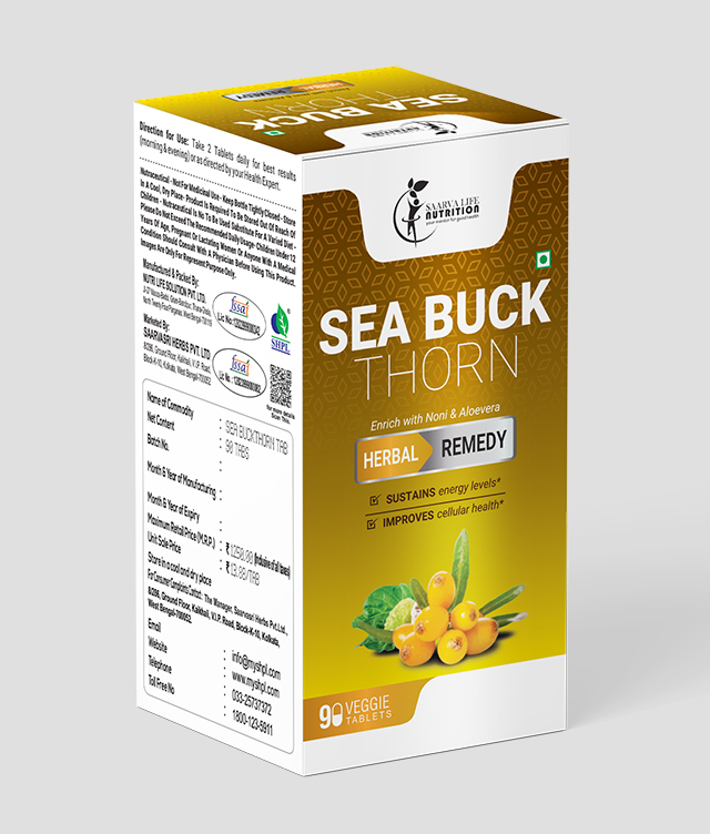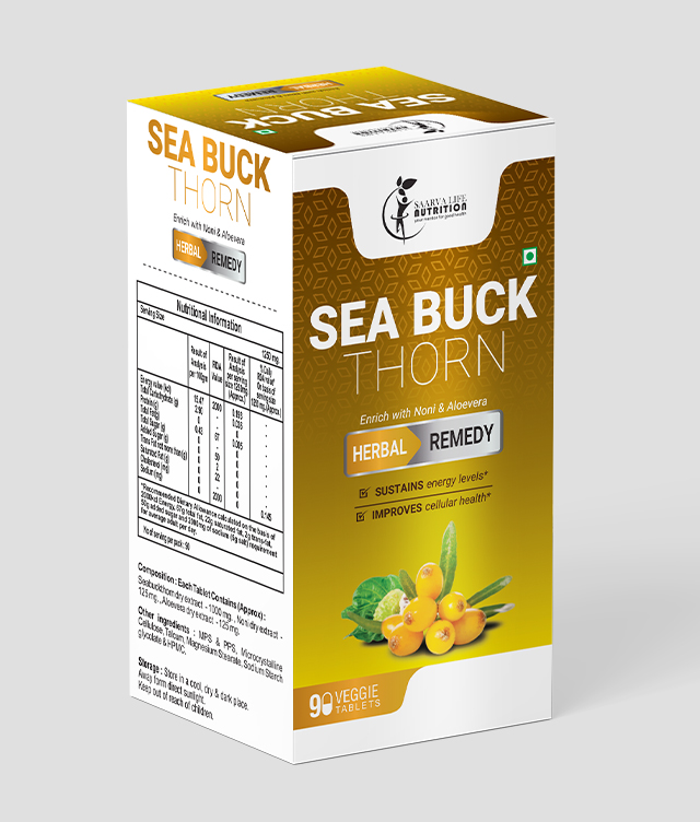 Saarvasri Herbs Sea Buckthorn Tablet is made with mainly Sea Buckthorn which is a wonderful berry with 1300 years of traditional uses. With over 190 bioactive compounds, sea berry (sea buckthorn) is an unsurpassed source of Omega 3, 6, and 9. And it is the world's richest source of the elusive essential fatty acid, omega-7, a fatty acid vital to collagen production and healthy skin, hair and nails. It is enriched with Noni and Aloevera, which make this product more effective.